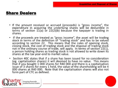 000 shares at R40 000. Note that the capitalisation shares will also not