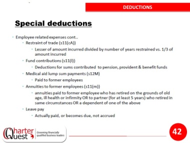 DEDUCTIONS Special deductions 42