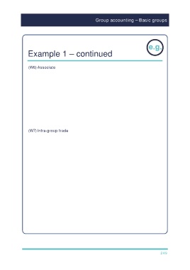 Group accounting – Basic groups Example 1 – continued (W6) Associate (W7) Intra-group trade 249