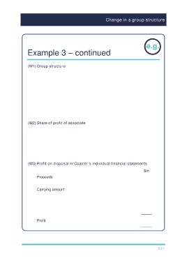 Change in a group structure Example 3 – continued (W1) Group structure (W2) Share of profit of associate (W3) Profit on disposal in Coaster’s individual financial statements $m Proceeds Carrying amount ––––– Profit ––––– 291
