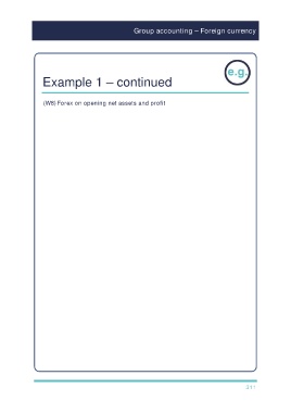 Group accounting – Foreign currency Example 1 – continued (W8) Forex on opening net assets and profit 311
