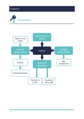 Chapter 8 Overview Identifying a Right-of-use lease asset Lessee Leases Lessor accounting accounting Net Liability Sale and investment leaseback Remeasurement Transfer is Transfer is a sale not a sale 92