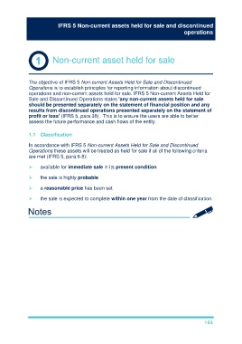 operations and non-current assets held for sale. IFRS 5 Non-current Assets Held for