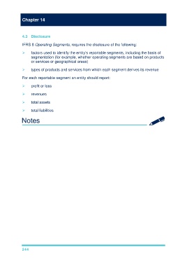 IFRS 8 Operating Segments, requires the disclosure of the following: