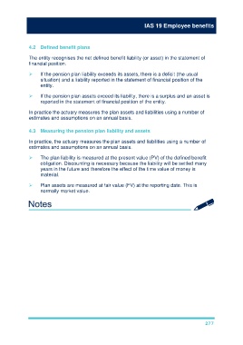 In practice, the actuary measures the plan assets and liabilities using a number of