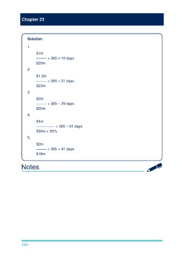 Chapter 23 Solution 1. $1m ––––– × 365 = 18 days $20m 2. $1.3m ––––– × 365 = 21 days $23m 3. $2m ––––– × 365 = 29 days $25m 4. $4m ––––––––– × 365 = 61 days $30m × 80% 5. $2m ––––– × 365 = 41 days $18m 382