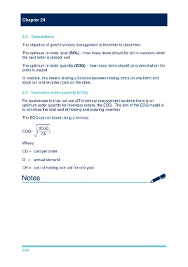 optimum order quantity for inventory orders, the EOQ. The aim of the EOQ model is