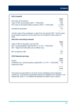 Value of NCI at acquisition (20% × 1030) (W2) 206