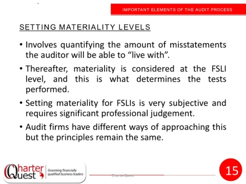IMPORTANT ELEMENTS OF THE AUDIT PROCESS