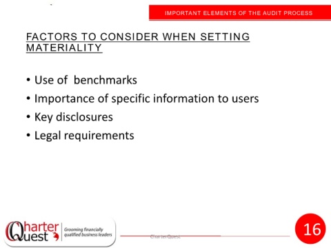 IMPORTANT ELEMENTS OF THE AUDIT PROCESS
