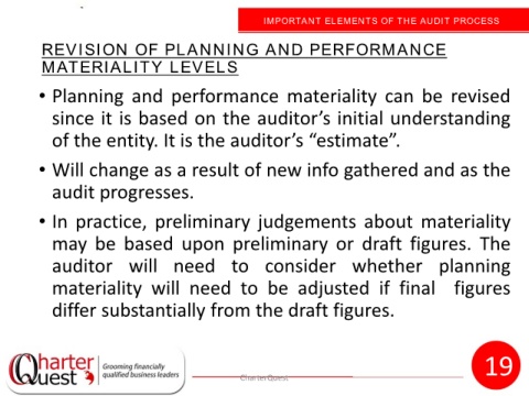 IMPORTANT ELEMENTS OF THE AUDIT PROCESS