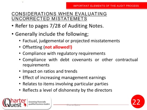 IMPORTANT ELEMENTS OF THE AUDIT PROCESS