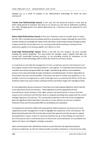 Reduce (high likelihood/low impact). In this case, Crowncare needs to consider ways to reduce