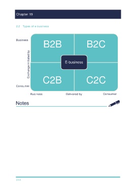 Chapter 19 2.2 Types of e-business Business B2B B2C Exchange initiated by E-business C2B C2C Consumer Business Delivered by Consumer 244