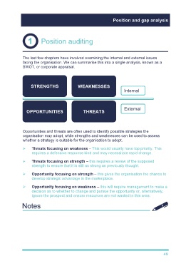 organisation may adopt, while strengths and weaknesses can be used to assess