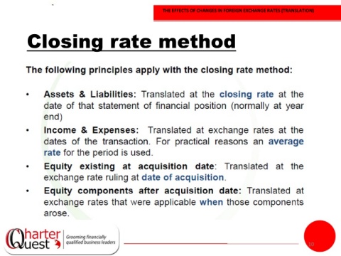 THE EFFECTS OF CHANGES IN FOREIGN EXCHANGE RATES (TRANSLATION) Closing rate method 10