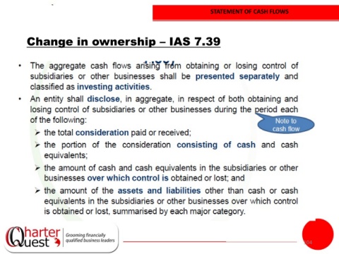 STATEMENT OF CASH FLOWS Change in ownership – IAS 7.39 104