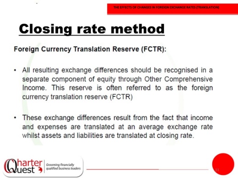 THE EFFECTS OF CHANGES IN FOREIGN EXCHANGE RATES (TRANSLATION) Closing rate method 11
