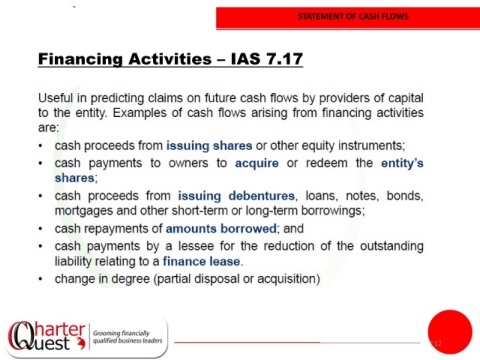 STATEMENT OF CASH FLOWS Financing Activities – IAS 7.17 112