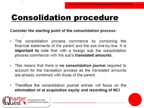 THE EFFECTS OF CHANGES IN FOREIGN EXCHANGE RATES (TRANSLATION) Consolidation procedure 12