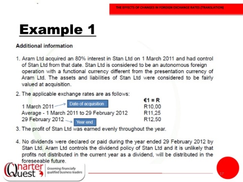 THE EFFECTS OF CHANGES IN FOREIGN EXCHANGE RATES (TRANSLATION) Example 1 17
