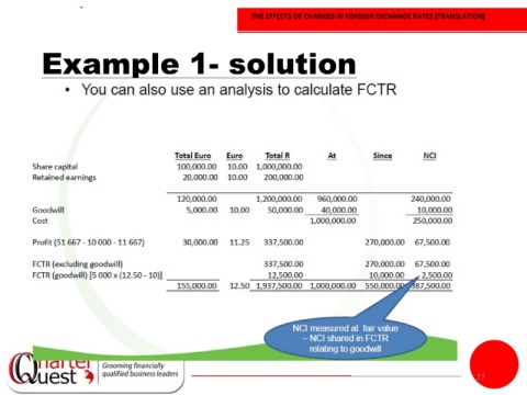 THE EFFECTS OF CHANGES IN FOREIGN EXCHANGE RATES (TRANSLATION) Example 1- solution 27