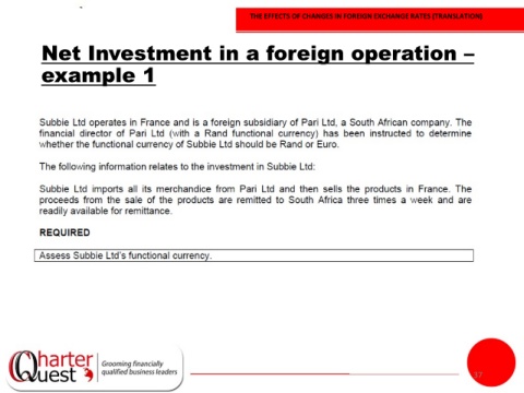 THE EFFECTS OF CHANGES IN FOREIGN EXCHANGE RATES (TRANSLATION) Net Investment in a foreign operation – example 1 37