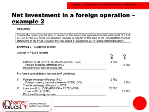 THE EFFECTS OF CHANGES IN FOREIGN EXCHANGE RATES (TRANSLATION) Net Investment in a foreign operation – example 2 40