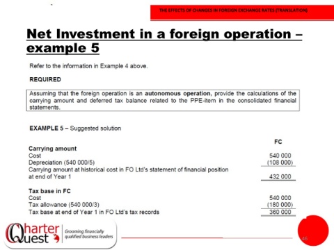 THE EFFECTS OF CHANGES IN FOREIGN EXCHANGE RATES (TRANSLATION) Net Investment in a foreign operation – example 5 46