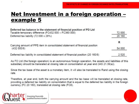 THE EFFECTS OF CHANGES IN FOREIGN EXCHANGE RATES (TRANSLATION) Net Investment in a foreign operation – example 5 47