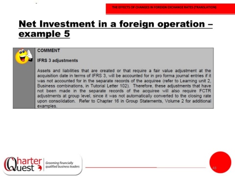 THE EFFECTS OF CHANGES IN FOREIGN EXCHANGE RATES (TRANSLATION) Net Investment in a foreign operation – example 5 48