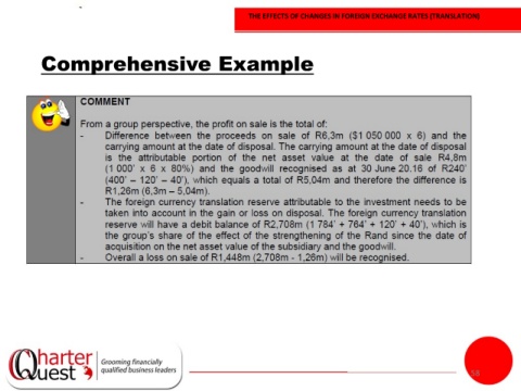 THE EFFECTS OF CHANGES IN FOREIGN EXCHANGE RATES (TRANSLATION) Comprehensive Example 58