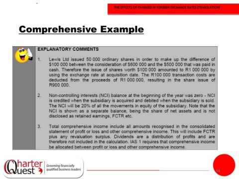 THE EFFECTS OF CHANGES IN FOREIGN EXCHANGE RATES (TRANSLATION) Comprehensive Example 64