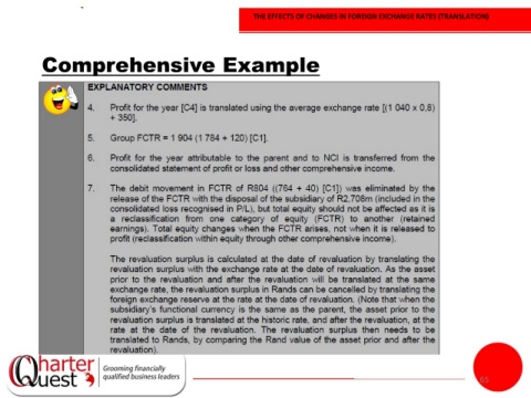 THE EFFECTS OF CHANGES IN FOREIGN EXCHANGE RATES (TRANSLATION) Comprehensive Example 65