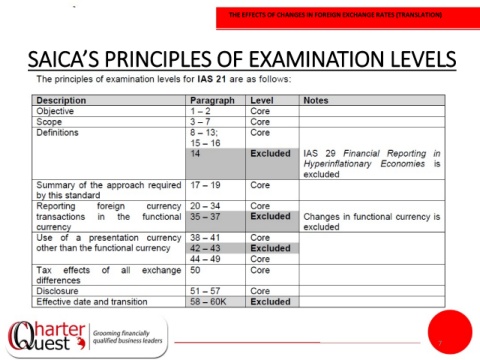 THE EFFECTS OF CHANGES IN FOREIGN EXCHANGE RATES (TRANSLATION) SAICA’S PRINCIPLES OF EXAMINATION LEVELS 7