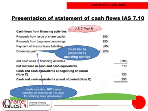STATEMENT OF CASH FLOWS Presentation of statement of cash flows IAS 7.10 82