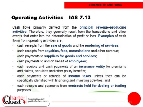 STATEMENT OF CASH FLOWS Operating Activities – IAS 7.13 83