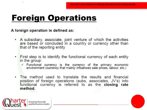 THE EFFECTS OF CHANGES IN FOREIGN EXCHANGE RATES (TRANSLATION) Foreign Operations 9