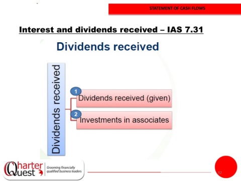 STATEMENT OF CASH FLOWS Interest and dividends received – IAS 7.31 92