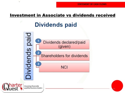 STATEMENT OF CASH FLOWS Investment in Associate vs dividends received 94