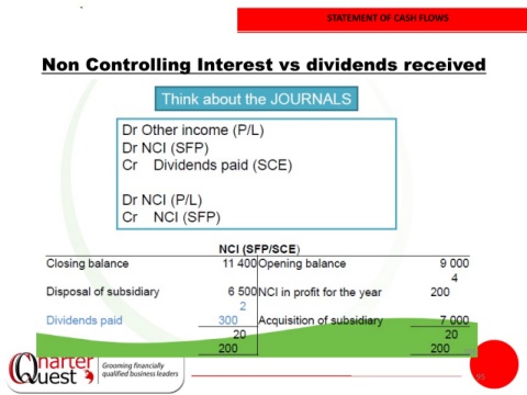 STATEMENT OF CASH FLOWS Non Controlling Interest vs dividends received 95