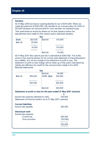 At 31 May 20X1 the current year tax is estimated at $383,500. This is the