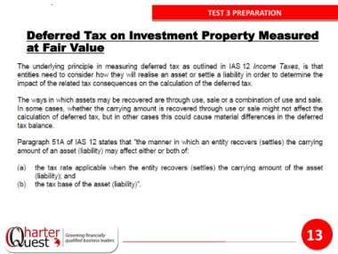 TEST 3 PREPARATION Deferred Tax on Investment Property Measured at Fair Value 13