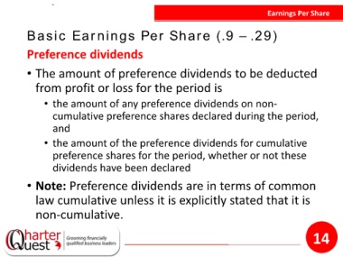 • the amount of the preference dividends for cumulative