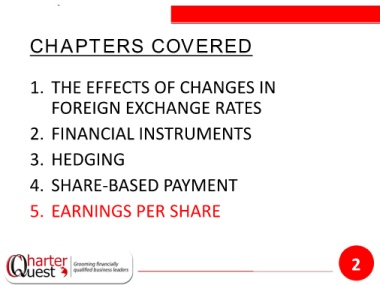 CHAPTERS COVERED 1. THE EFFECTS OF CHANGES IN FOREIGN EXCHANGE RATES 2. FINANCIAL INSTRUMENTS 3. HEDGING 4. SHARE-BASED PAYMENT 5. EARNINGS PER SHARE 2