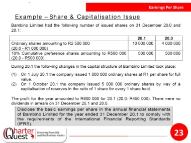 Earnings Per Share Example – Share & Capitalisation Issue • 23