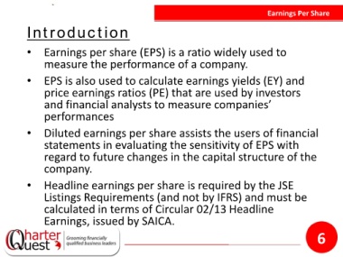 • Earnings per share (EPS) is a ratio widely used to