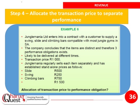 REVENUE Step 4 – Allocate the transaction price to separate performance 36