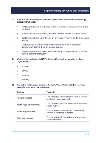 25 Match the following activities in Porter’s Value Chain with the relevant