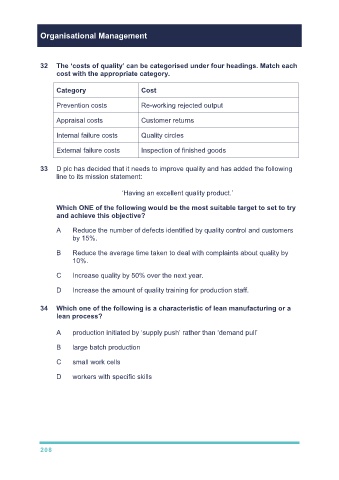 32 The ‘costs of quality’ can be categorised under four headings. Match each